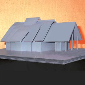屋根の形を特徴とした外観を持つ一戸建て専用住宅の計画案。 現代の「民家」を模索しています。 家族構成の変化に対応できるプランニングとし、しっかりとした構造とすることで、なるべく長くその地に建っていられる建築としたい。 建て替えのサイクルが長くなる事が、地球環境に対して優しいし、風景に溶け込む事で敷地周辺の環境に対しても貢献する事になると思います。 |